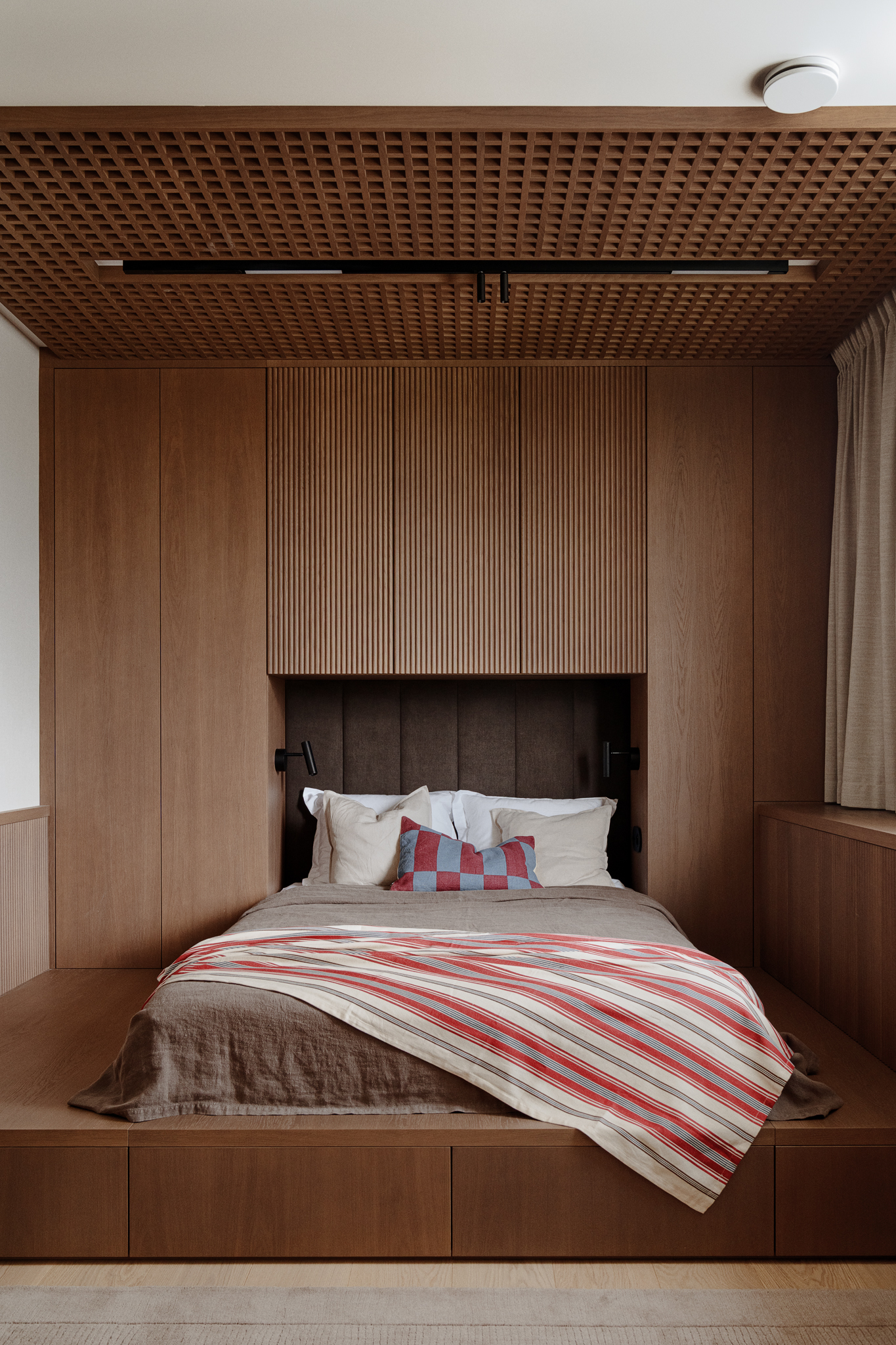 Mozaiki z drewna, lamperie, podesty oraz podwieszane sufity wykonane z naturalnego drewna sprawiły, że była to realizacja wymagająca zaawansowanego warsztatu stolarskiego.