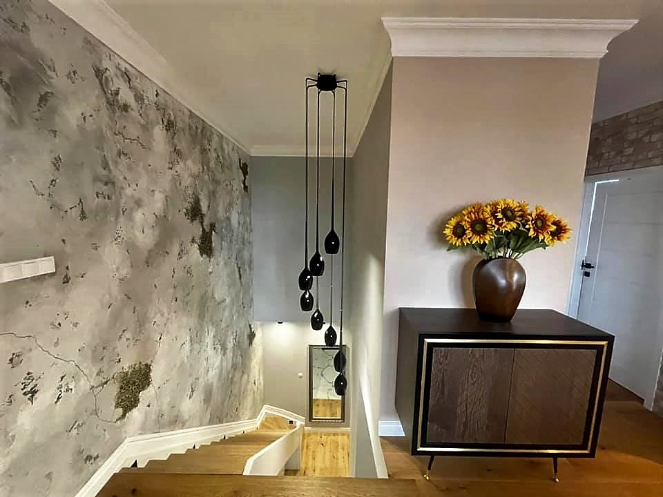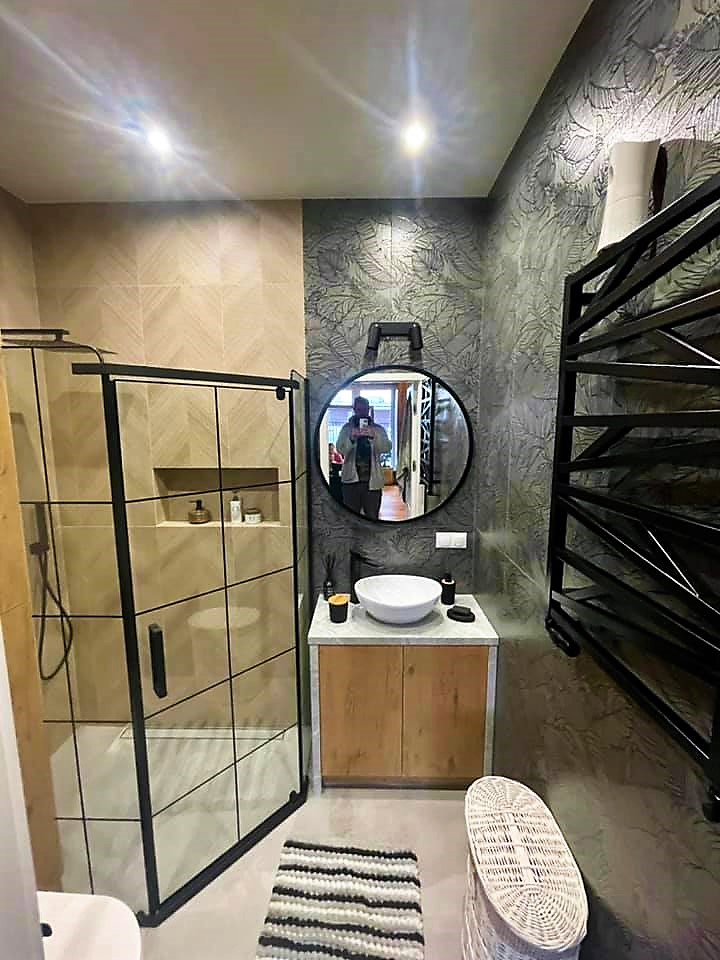 Usytuowany u bram tętniącego życiem miasta 100-metrowy apartament przeszedł niezwykłą metamorfozę, kierując się unikalną wizją projektową klienta. Łącząc nowoczesną elegancję z oryginalnymi akcentami, renowacja ożywiła przestrzeń. Jedną z wyróżniających się cech było znakomite wykorzystanie mikrocementu, który zdobił ściany, tworząc jednolite i artystyczne tło. Bogata drewniana podłoga w salonie dodała odrobinę ponadczasowego ciepła, uzupełniając nowoczesną estetykę. W kuchni duże płytki skąpane w naturalnym świetle stworzyły wspaniałą atmosferę, a oryginalne akcenty klienta, od starannie dobranych mebli po artystyczne ekspozycje, dodały charakteru i osobowości całości.